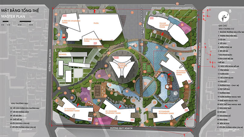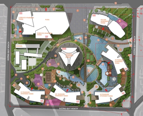 - Không gian xanh: Công viên trung tâm, vườn hoa, hồ điều hòa, khu BBQ – tạo môi trường sống trong lành, cân bằng.